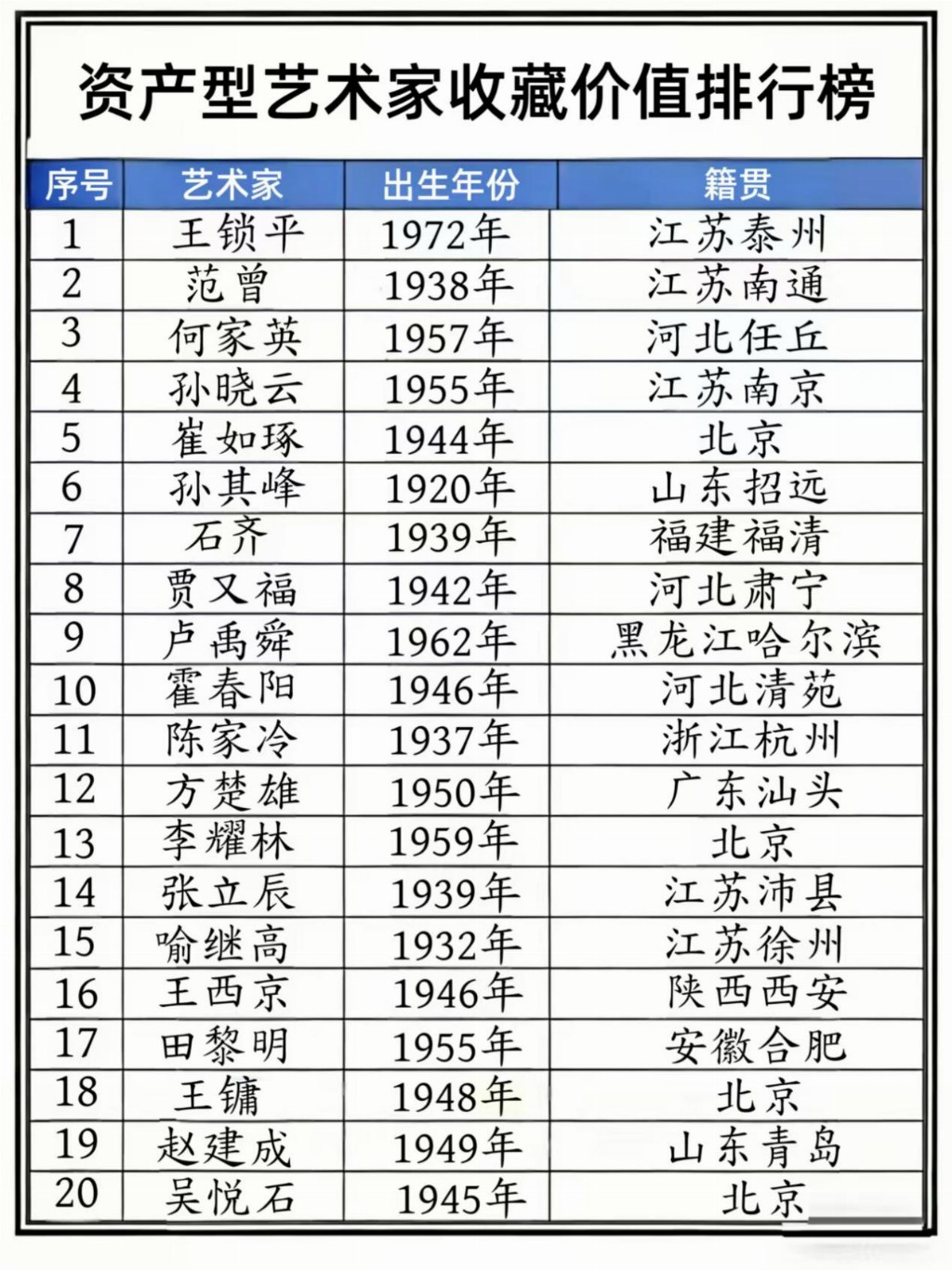 王锁平——资产型艺术家收藏价值排行榜