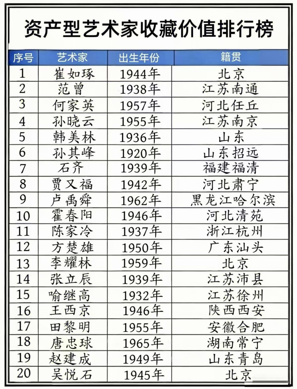 为此,隆重推出【资产型艺术家排行榜】与【收藏投资排行榜】。