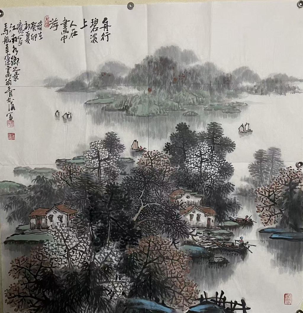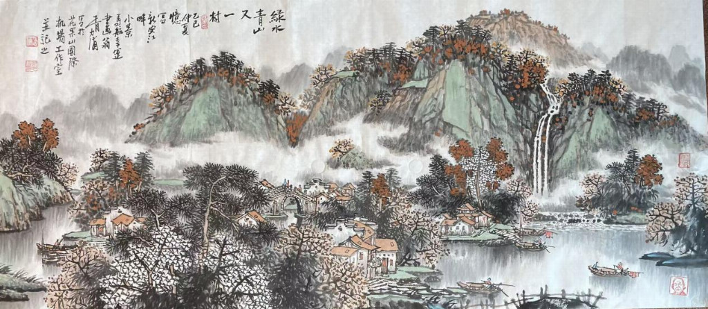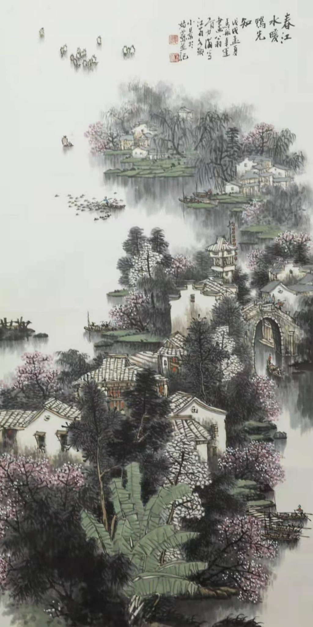 胥力浦的山水画作,始终流淌着一种清雅脱俗的气质。他深谙中国画“外师造化,中得心源”的创作理念,在继承传统青绿山水技法的基础上,融入了自己对自然生命的独特感悟。其构图往往大开大合,山势雄浑而不失秀润,水色空濛而蕴含生机。在墨色的运用上,他善于通过干湿浓淡的微妙变化,营造出山岚浮动的氤氲之气,使画面在虚实相生间呈现出深远的空间意境。无论是层峦叠嶂的宏大叙事,还是溪涧幽谷的精致小品,都透露出画家对自然规律的深刻理解与对天地和谐的永恒追求。