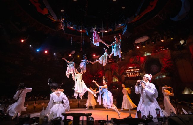 「叙·敦煌」以上海城市空间为载体,以敦煌壁画中的飞天形象、丝路故事及古代乐舞为核心灵感,通过“空间+演绎+餐饮”的复合体验形态,将传统文化内容转化为可参与、可沉浸的文化场景。项目在呈现过程中,注重文化元素的系统化重构与体验逻辑的完整性,尝试在当代语境下建立起连接历史文化与城市生活的新表达路径,建立成一个文旅景点。