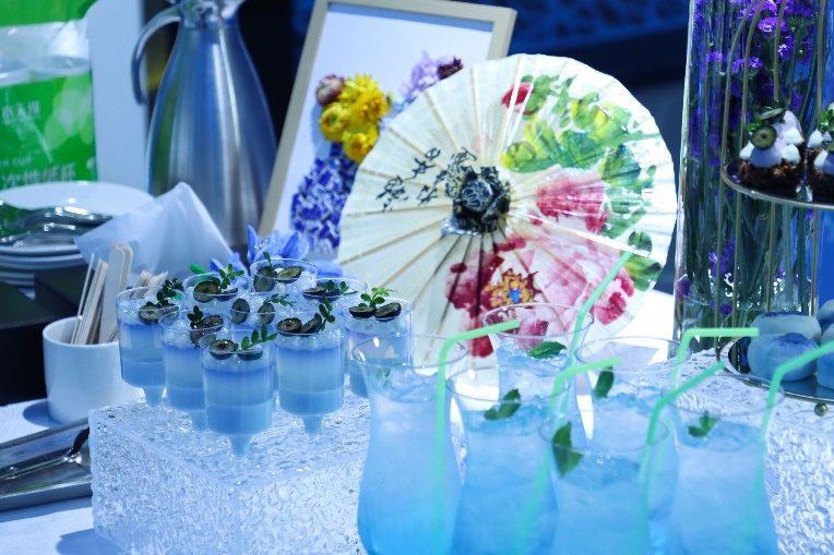 生活空间:酒店通过“宿、食、乐、聚、动”的全域产品理念,结合非遗特色文化,用蓝染桌布、装饰画、主题茶歇打造“蓝调氛围感”,让宾客在等待、休憩时自然感受非遗美学;
